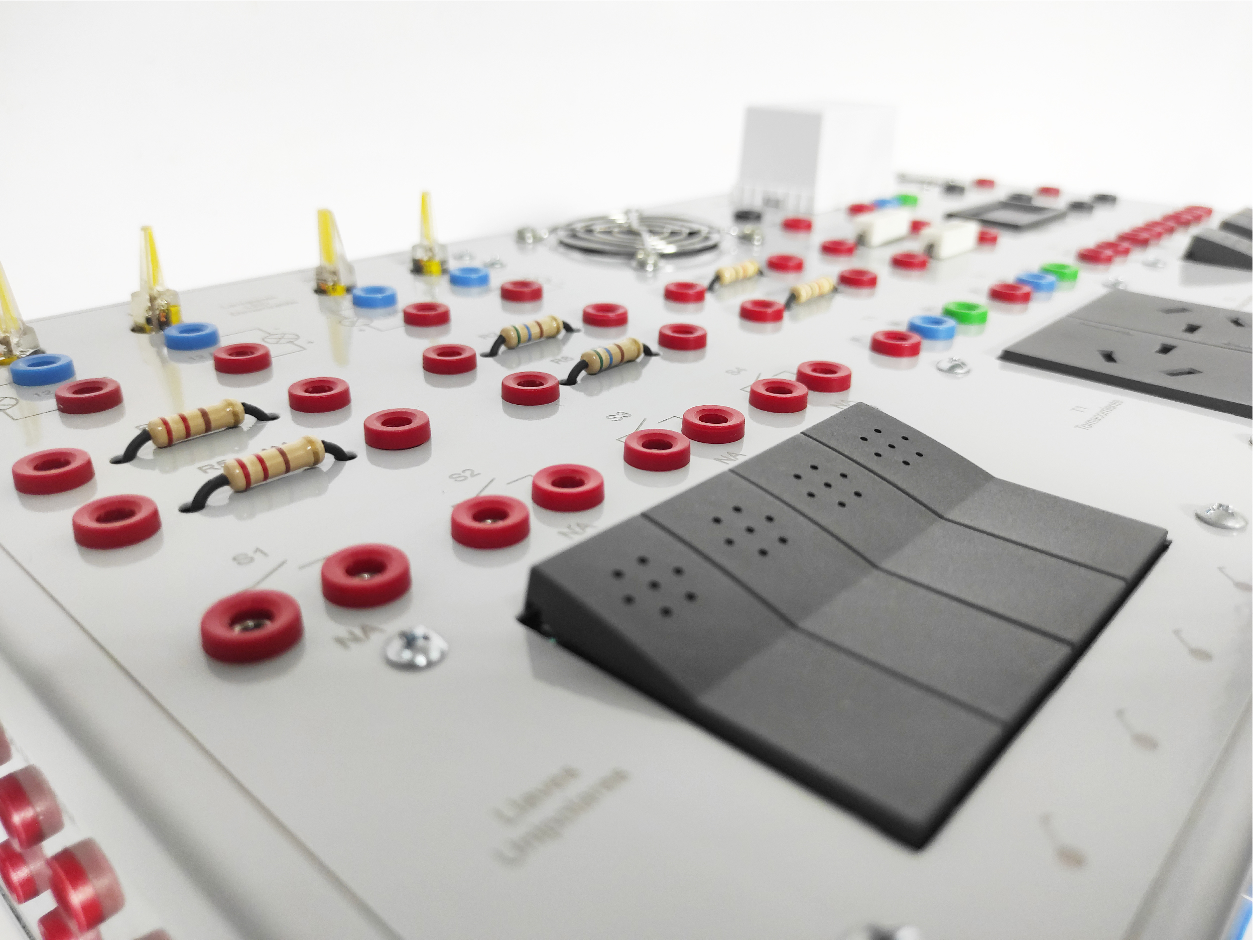 Incluye todas las protecciones de seguridad eléctrica de acuerdo a las normativas vigentes en esta materia, necesarias para un funcionamiento adecuado, sin riesgos para los alumnos o docentes. Las prácticas se realizan en su totalidad con tensiones de bajo valor, menores a 24 Volts.