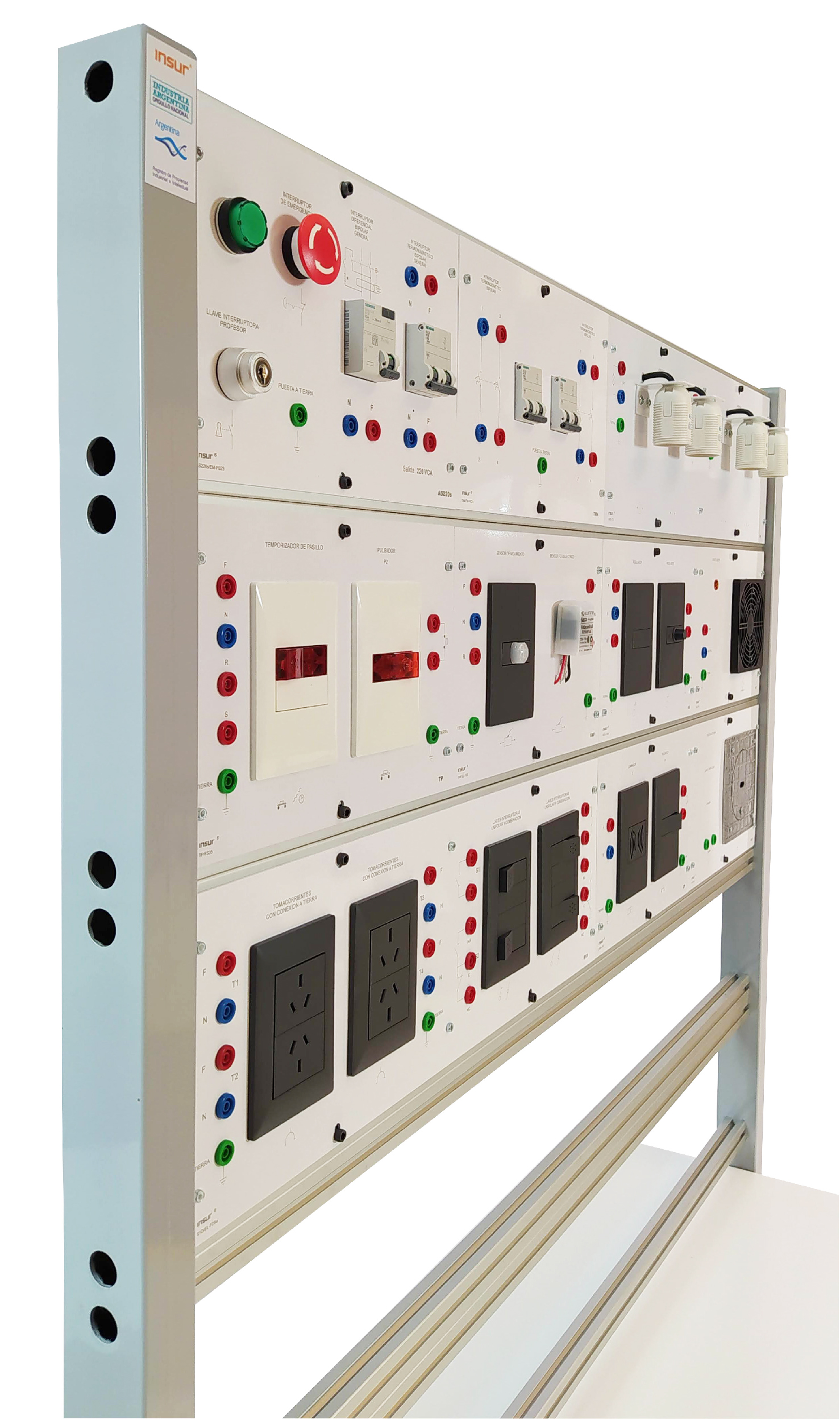Este Tablero Didáctico provee a los alumnos el aprendizaje teórico-práctico, y los conceptos fundamentales de las instalaciones eléctricas domiciliarias. Incluye el armado de múltiples circuitos con los distintos elementos de protección, accionamiento de dispositivos e iluminación para diversas aplicaciones. El equipo dispone de componentes y materiales de última tecnología, de uso real y frecuente en el mercado eléctrico. Los trabajos prácticos incluyen el conexionado y la experimentación de una gran variedad de esquemas y circuitos de montaje. Permite realizar todos los pasos necesarios de una instalación eléctrica domiciliaria, teniendo en cuenta la reglamentación vigente, las protecciones y las normas de seguridad, a fin de garantizar a los docentes y alumnos un funcionamiento sin ningún tipo de riesgo.